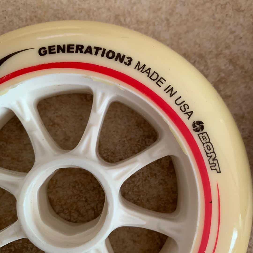 The BONT G3 110 mm 84A was developed in the early 2000’s. The chemical formula of the polyurethane used by Bont . This material was used to manufacture the wheels of the professional team. First good point: this model is produced in the United States of America not overseas.