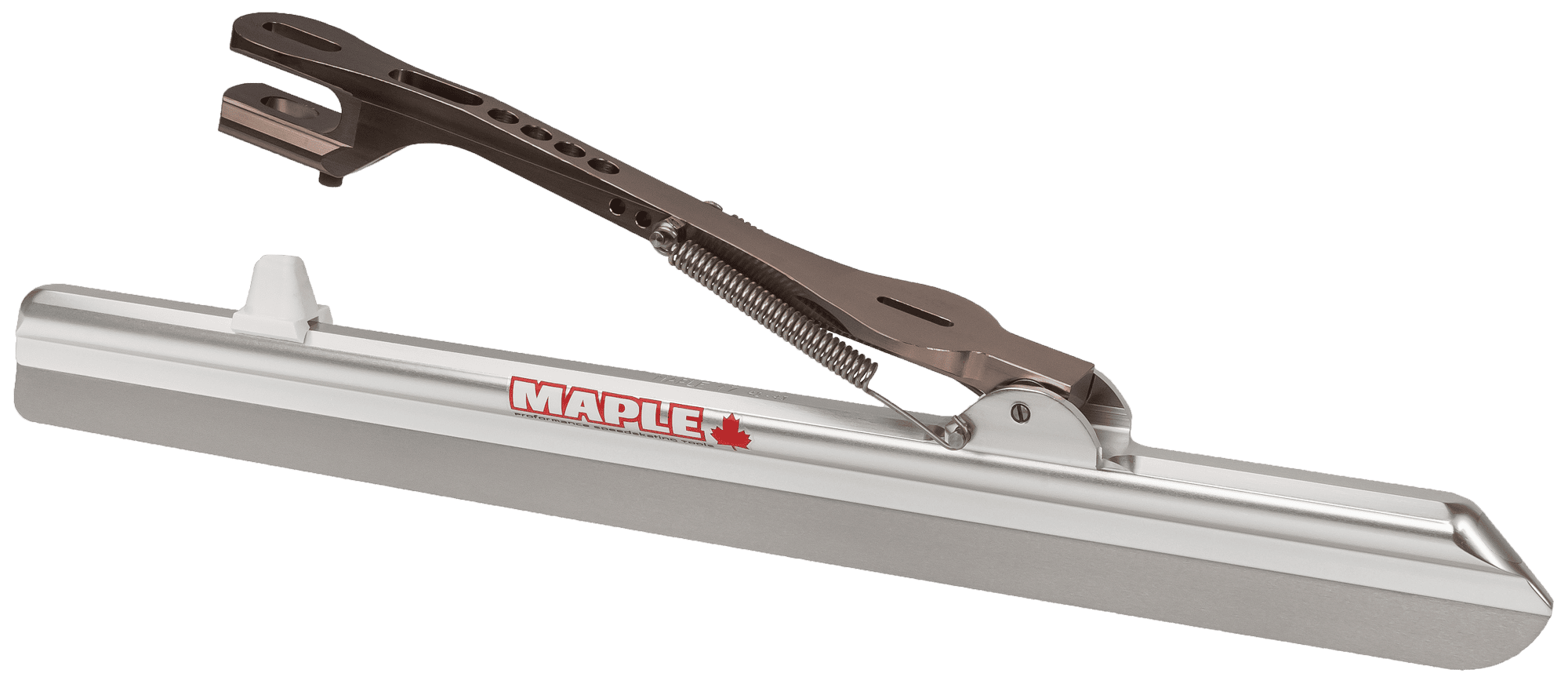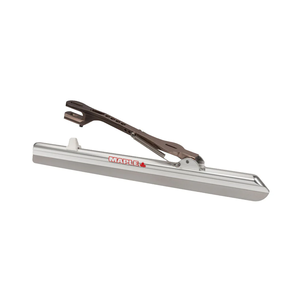 The MAPLE BLIZZARD Clap Longtrack Blade features the same high chrome stainless steel runner as on the Chrome ST blade ground to 1.1 mm thickness. Exceptional glide and durability for this price range. in addition it can be equipped with front to back slots for Long Track style boot mounts or side ways slots for fixed bolt 6.5″ 165 mm designs. Fast and affordable. The Best buy in a competitive long track clap blade. 1,1 mm chrome tool steel 58 Hrc. The blades have received a special treatment in order to reduce the friction to a minimum.Precision ground blades Aluminum 7000 series tube for optimal flexibility; stable and yet easy to control.