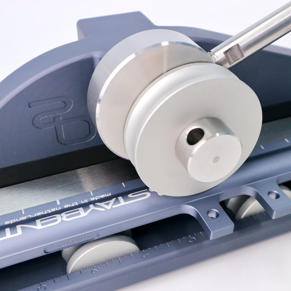 The StayBent Pro ST bender is a single block CBC-machined 7000 series aluminum, this Bender has extremely tight tolerances, and holds your blades in a consistent position every time for bend adjustment. The bender comes with bottom mount locators, to adjust precisely where you need to apply pressure for a perfect bend. The redesigned handle give great feel to the pressure you are applying. Don’t let imitation benders fool you. Trusted by the best in the world.