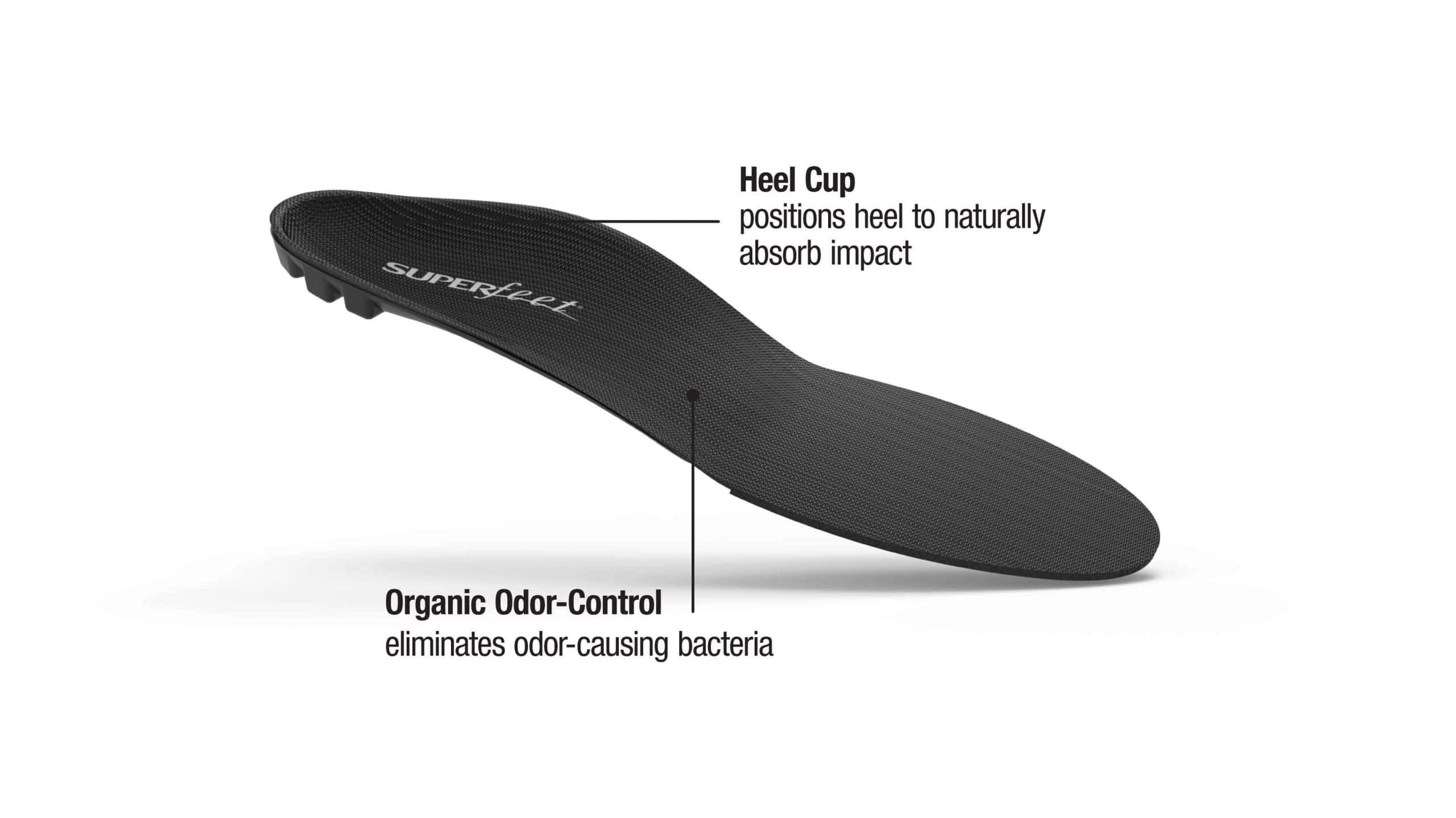 The signature Superfeet shape helps stabilize and support the foot, which can help reduce stress on feet, ankles and knees